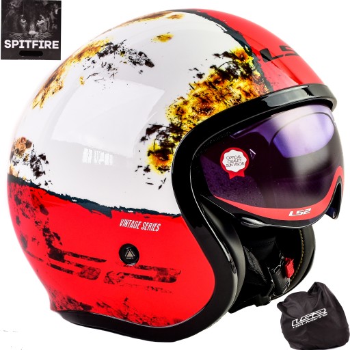 OTWARTY KASK LS2 SPITFIRE RUST WHITE RED BLENDA rozmiar S
