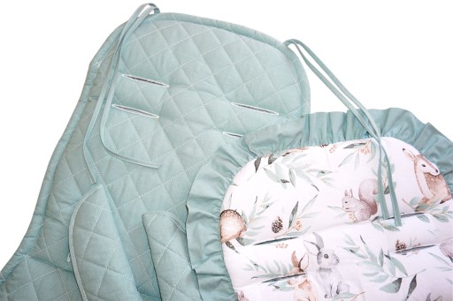 W komplecie znajdują się również poduszeczka oraz osłonki na szelki do wózka,