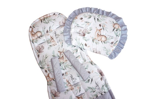 W komplecie znajdują się również poduszeczka oraz osłonki na szelki do wózka,