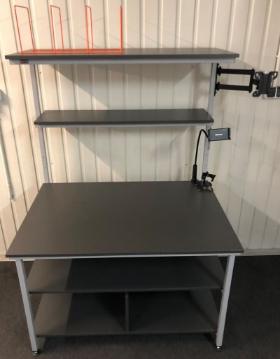 uchwyt na drukarkę do etykiet, uchwyt do worków na odpady, półki boczne, moduł oświetlenia, moduł cięcia folii, zmiana materiału blatu roboczego.