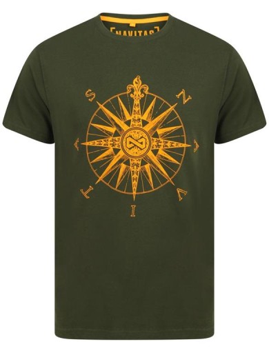 T-shirt o standardowym kroju, zwieńczony niestandardowym wzorem kompasu NVTS i wykończony tkaną metką na rękawie.