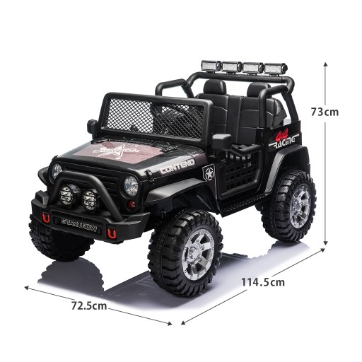 Samochód elektryczny wyposażony jest w dwa siedzenia oraz regulowane pasy bezpieczeństwa, aby zapewnić bezpieczeństwo dzieciom. Dodatkowo dzięki zamontowaniu pedałów nożnych, opon antypoślizgowych, pilota zdalnego sterowania i podwójnych drzwi nasze produkty mogą zaspokoić potrzeby szczęścia przy jednoczesnym zapewnieniu bezpieczeństwa.