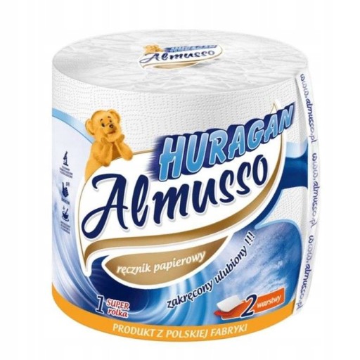 Almusso Huragan to jedna super rolka ręcznika wykonana w 100% z czystej celulozy. Dzięki specjalnej mieszance włókien i tłoczeniu, dwie warstwy śnieżnobiałej celulozy mają wszechstronne zastosowanie. Doskonale sprawdzą się podczas wszelkich czynności w kuchni oraz prac porządkowych. Możesz umyć okna bez obaw, nie pozostawiając włókien ani smug.