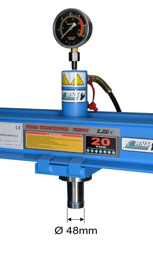 Prasa posiada manometr ciśnieniowy wyskalowany w tonach wypełniony glikolem.