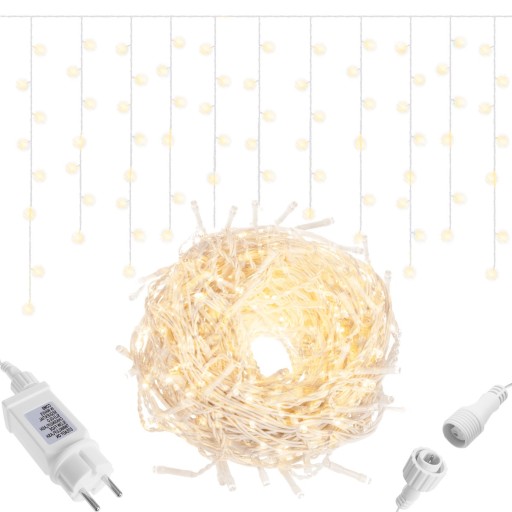 KURTYNA ŚWIETLNA SOPLE 200 LED LAMPKI IP44 BIAŁE