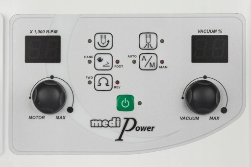 Frezarka do pedicure oraz manicure z pochłaniaczem pyłu marki SAESHINE , model Medi Power. Frezarka przeznaczona do pedicure, podologii ale także do pracy manicure. Obudowa rączki wykonana z tworzywa sztucznego zapewnia niską wagę.