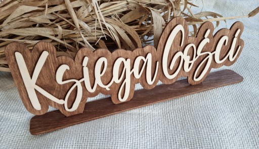 KSIĘGA GOŚCI NAPIS DREWNIANY Z PODSTAWKĄ