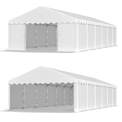 o długościach: 4m, 6m, 8m, 10m, 12m (dodatkowo namioty można łączyć ze sobą krótszym bokiem co stwarza nieskończone możliwości)