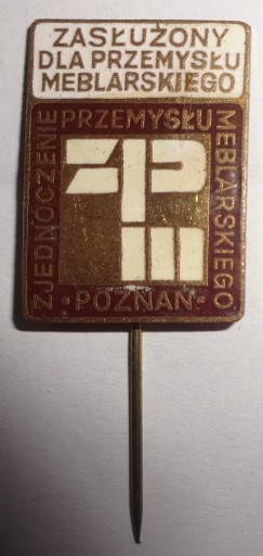 W związku z likwidacją kolekcji, oferuję stary znaczek-przypinkę: Zasłużony dla Przemysłu Meblarskiego – Zjednoczenie Przemysłu Meblarskiego Poznań. Stan jak na zdjęciu. Pochodzi prawdopodobnie z lat 60 lub 70 ubiegłego wieku. Przybliżone wymiary bez szpilki: długość 1,9 cm, wysokość 2,6 cm. Zapraszam na inne moje aukcje.