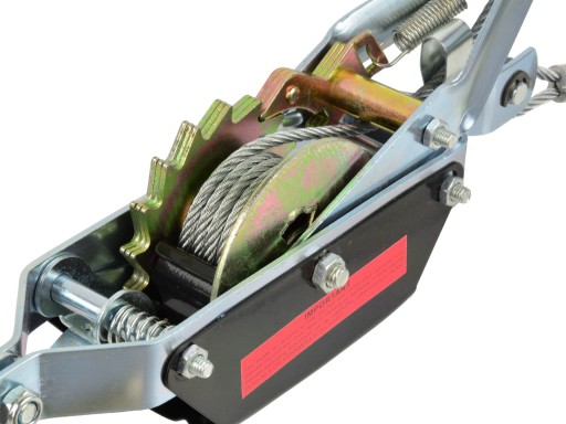 Wciągarka wyposażona została w 1-trybowy mechanizm blokujący, stalową line o średnicy 4,5 mm i długości 2,5 m, co w połączeniu z wytrzymałymi hakami generuje siłę uciągu na poziomie 2000 kg.
