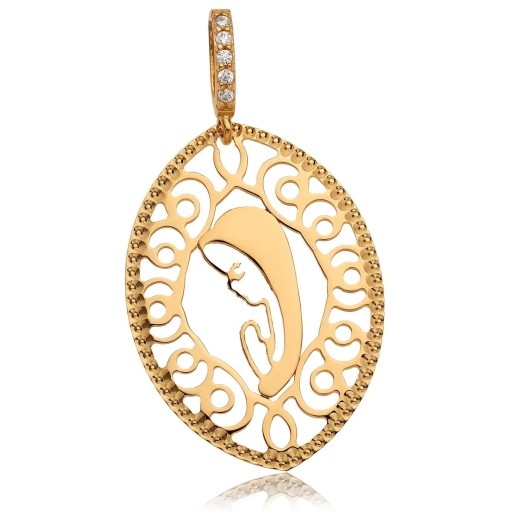 Medalik z wizerunkiem Matki Boskiej ze złożonymi do modlitwy rękami. Maryja traktowana jest jako opiekunka, powierniczka, pocieszycielka. W konkretnych życiowych sytuacjach staje się orędowniczką u Boga, uzdrowicielką, cudotwórczynią. Matka Boska towarzyszy wierzącym od narodzin, poprzez wesela, aż do śmierci. Pokazuje jak ważna, jest świętość życia i to, że należy je traktować z należytym szacunkiem, radością i zaufaniem. Wspaniały medalik, ukazujący głęboką wiarę, dobroć i miłość.