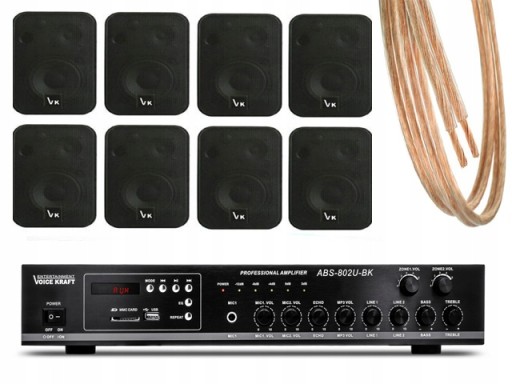 Wysokiej jakości zestaw sprawi że Twoje nagłośnienie nabierze nowego wymiaru. Nie duże wymiary wzmacniacza umożliwiają łatwą instalację. Ponadto zestaw ten świetnie nadaje się do instalacji audio w domach, biurach, sklepach, halach, gabinetach, restauracjach, kawiarniach, poczekalniach, itp. Wzmacniacz posiada wbudowane radio FM wraz z gniazdem USB oraz czytnikiem kart SD. Całość sterujemy pilotem.