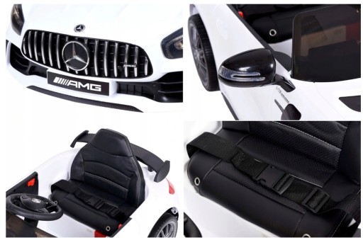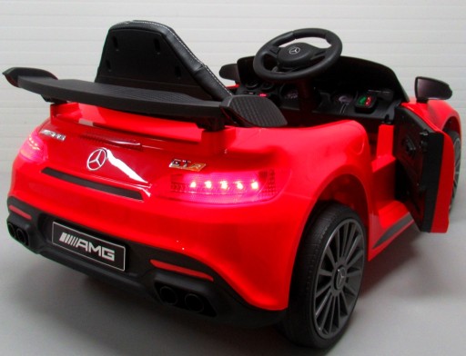 Atrakcyjny samochód na akumulator Mercedes GTR o rasowym sportowym wyglądzie z otwieranymi drzwiami. Pojazd posiada liczne niklowane elementy oraz opływowe kształty podkreślające sportowy charakter auta. Samochód może być sterowany za pomocą pilota zdalnie jak również przez dziecko siedzące wewnątrz auta. Pojazd przeznaczony jest dla dzieci w wieku od 12 miesięcy do 7 lat. Maksymalne dopuszczalne obciążenie 25 kg.
