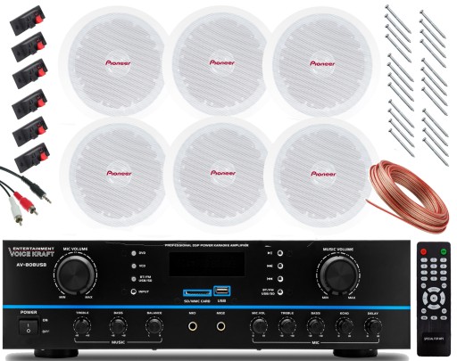 6 ПОТОЛОЧНЫХ ДИНАМИКОВ PIONEER УСИЛИТЕЛЬ BLUETOOTH