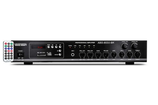 Wysokiej jakości zestaw sprawi że Twoje nagłośnienie nabierze nowego wymiaru. Nie duże wymiary wzmacniacza umożliwiają łatwą instalację. Ponadto wzmacniacz ten świetnie nadaje się do instalacji audio w domach, biurach, sklepach, halach, gabinetach, restauracjach, kawiarniach, poczekalniach, itp. Wzmacniacz posiada wbudowane radio FM wraz z gniazdem USB oraz czytnikiem kart SD. Całość sterujemy pilotem.