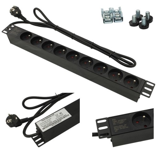 Удлинитель 230 В для шкафа RACK 19 футов, 9 розеток