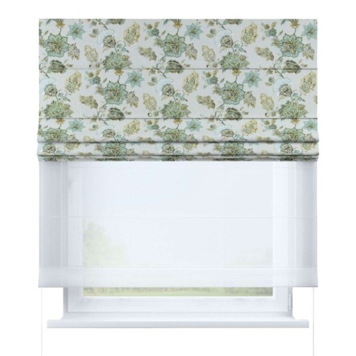Roleta rzymska Duo, szer.130 x dł.170 cm, kwiaty na beżowo - szarym tle, kolekcja Flowers