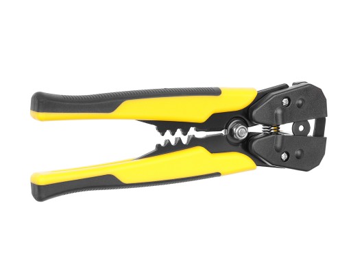 - SPECYFIKACJA - kolor: żółto-czarny; materiał: stop cynku, pozostałe: PP + TPR + stal; antypoślizgowa nakładka: TAK; mechanizm: czołowy, automatyczny; ściąganie izolacji z kabli o średnicy: 0,2 - 6 mm² (10 - 24 AWG); zaciskanie końcówek konektorowych izolowanych: 0,5 - 6 mm² (22-10 AWG) i nieizolowanych: 4 - 6 mm² (12-10 AWG), 1,5 - 2,5 mm² (16-14 AWG), 05 - 1mm² (22-18 AWG); wymiary (dł/szer/wys): 20/10/3 cm; waga: 0,35 kg; waga w opakowaniu: 0,4 kg.