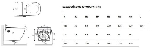 Montaż : podwieszana na stelaż , ścianę z ukrytym systemem mocowań