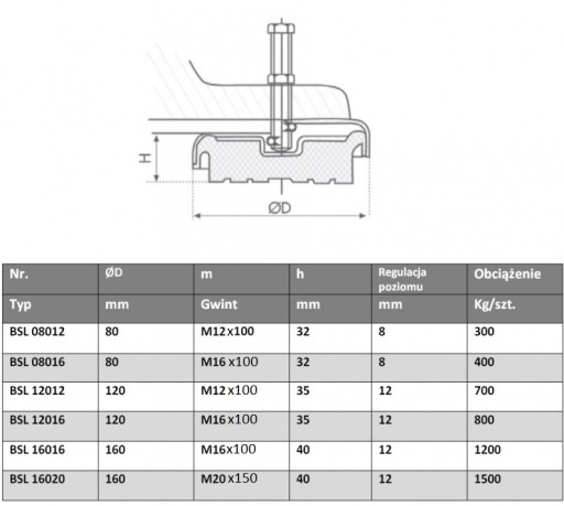 ВИБРОИЗОЛЯТОР Регулировочная ножка для машин BSL08012