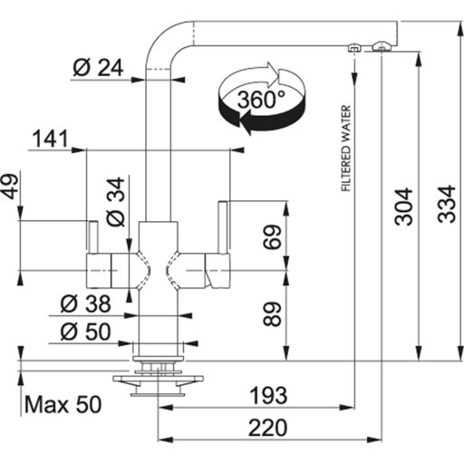 - Zasięg wylewki: 220.00 mm
