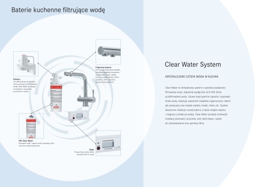 Filtry Franke Clear Water to wygodne i wydajne filtrowanie wody, którą możemy się cieszyć 24 godziny na dobę a krystalicznie czystą wodę pijemy prosto z kranu. Filtr Clear Water usuwa nieprzyjemne zapachy i poprawia smak. Filtry Franke usuwają wiele zanieczyszczeń, jakie można spotkać w wodzie z instalacji miejskiej jak np.: chlor, metale ciężkie w tym; ołów, miedź, cynk, nikiel. Ponadto filtr rozpuszcza lotne związki organiczne oraz hamuje rozwój bakterii. Żywica jonowymienna zmiękcza wodę, usuwając m.in. związki wapnia i magnezu, dzięki czemu ograniczamy osadzanie się jasnego osadu z kamienia na armaturze oraz zlewozmywaku.