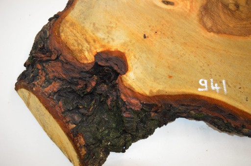Zdjęcia robimy od razu po przecięciu, żeby jak najlepiej pokazać w jaki sposób można wyprowadzić plaster i podkreślić jego strukturę. W procesie suszenia naturalną rzeczą są pęknięcia materiału powstałe w skutek oddawania wilgoci oraz powierzchowna zmiana barwy. Jedno ze zdjęć pokazuje aktualny stan plastra z początku sierpnia.