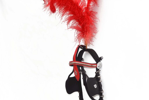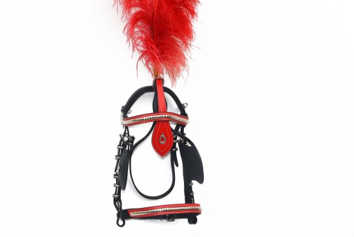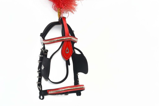 Ogłowie zaprzęgowe z okularami z wszytą tulejką na pióropusz roz. FULL Ogłowie wykonane w całości ze skóry licowej ,wszystkie okucia i sprzączki wykonane ze stali nie szlachetnej ,ogłowie zdobione .