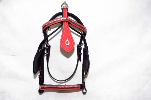 Ogłowie zaprzęgowe z okularami z wszytą tulejką na pióropusz roz. FULL Ogłowie wykonane w całości ze skóry licowej ,wszystkie okucia i sprzączki wykonane ze stali nie szlachetnej ,ogłowie zdobione .