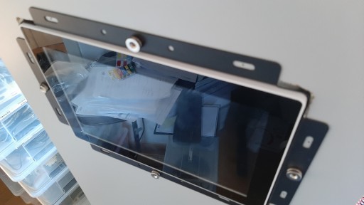 - Panel posiada kilka możliwości montażu. Można go postawić na biurku, zawiesić na ścianie poprzez płaski uchwyt lub 2 rodzaje uchwytów obracanych, można też zamontować tablet w ścianie, wówczas należy dokupić puszkę, oraz odpowiednią ramkę w dwóch szerokościach i kilku kolorach (uwaga montaż zalecany w płytach meblowych i GK, ze względu na odprowadzenie ciepła).