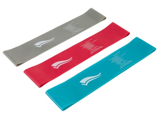 - 3 taśmy fitness do treningu o różnej intensywności: lekkiego, średniego i ciężkiego