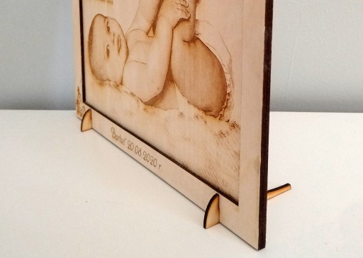 Drewniany obrazek z wygrawerowanym zdjęciem i dedykacją będzie stanowił niepowtarzalny, personalizowany prezent z okazji Chrztu Świętego i nie tylko. Grawer zdjęcia w drewnie daje wyjątkowy efekt zbliżony do płaskorzeźby.