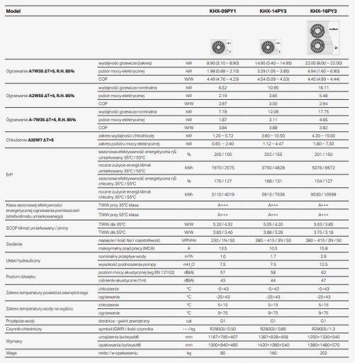POMPA CIEPŁA MONOBLOK KAISAI 14 KW KHX-14PY3 (3-FAZOWA) R290 PROPAN