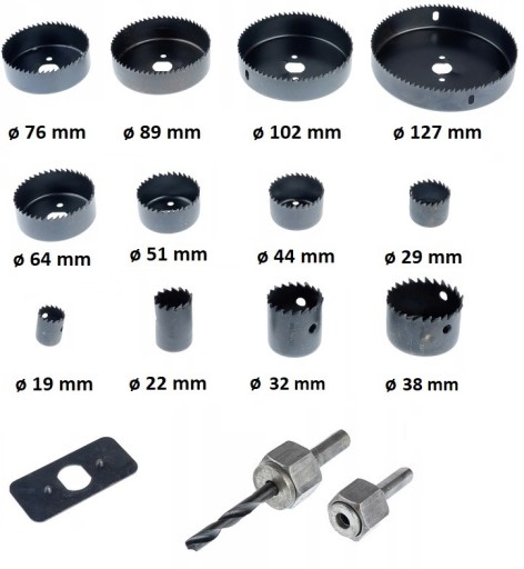 - 12 otwornic: 19, 22, 29, 32, 38, 44, 51, 64, 76, 89, 102, 127 mm