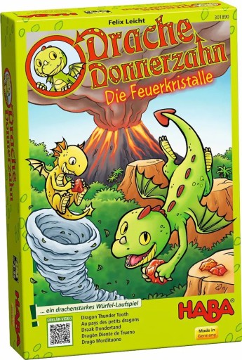 Gra Smok Grzmiący Ząbek Haba . Gra z kostką dla 2 do 4 małych smoków w wieku od 3 do 99 lat. Nadchodzi długo oczekiwany Festiwal Dnia Smoka. Szczególnie podekscytowane tym wydarzeniem są małe smoki, a wśród nich Grzmiący Ząbek i jego trójka przyjaciół: Latająca Iskra, Srebrny Błysk i Płonący Ślad. Niedługo rozpocznie się konkurencja w lataniu przez Smoczą Dolinę, a jej zwycięzca będzie miał zaszczyt rozpalić wielkie fajerwerki. W oddali widać punkt końcowy konkursu latania - ogromny wulkan z czterema jaskrawymi kryształami na jego szczycie.