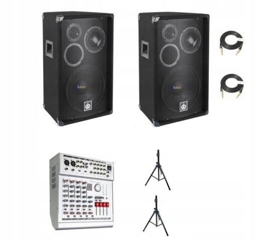 -Zestaw nagłośnienia: Powermikser, Kolumny, Kable, Statywy