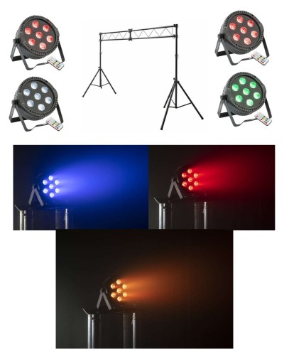 -Zestaw oświetlenia: Rampa 3m ze statywami + 4 Reflektory PAR LED