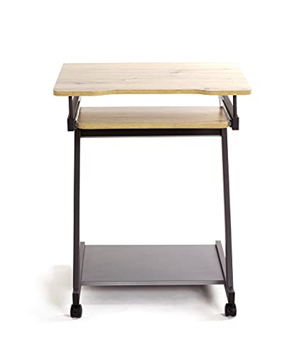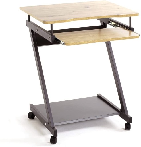 Biurko posiada wysuwaną półkę pod klawiaturę oraz dolną do przechowywania lub do postawienia komputera stacjonarnego. Rama wykonana jest z rury stalowej pomalowanej na kolor antracyt. Półki wykonane są z płyty MDF pokrytej żywicą w kolorze dębowym. Półka na klawiaturę posiada dwie prowadnice.