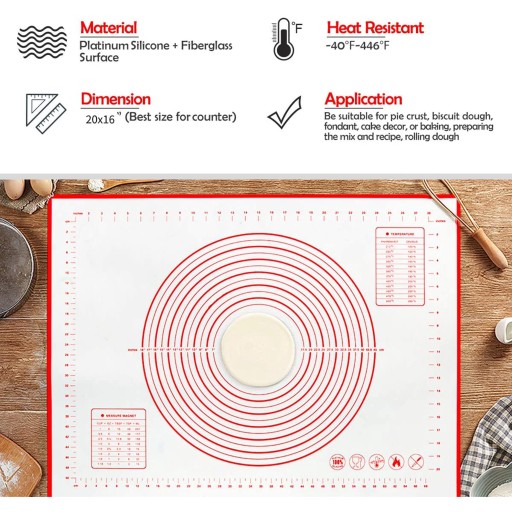 ✔️Silikon spożywczy: Mata do ciasta wykonana jest z wysokiej jakości silikonu i włókna szklanego. Jest bezpieczna, gładka, trwała i nie marszczy się ani nie blednie.