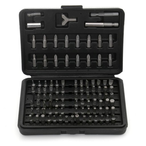 100-elementowy zestaw bitów wykonanych ze wzmocnionej stali węglowej. Do stosowania z narzędziami elektrycznymi. Całość zapakowana w praktyczną walizkę.