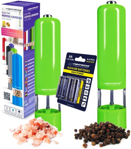 - Zasilanie: Każdy młynek - 4 baterie AA (dołączone gratis)