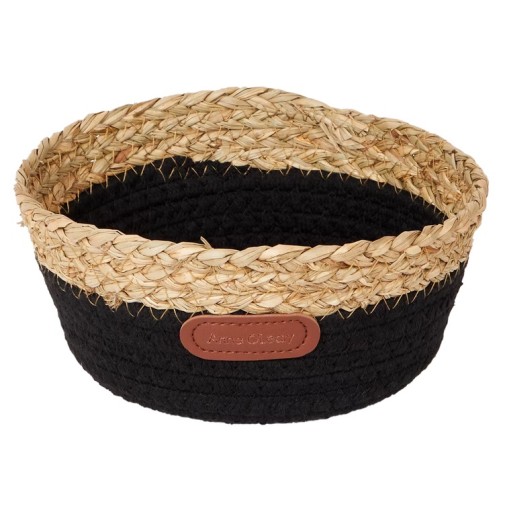 PLECIONY KOSZYK Ø 22 cm / CZARNY MATERIAŁ + PLECIONKA Z TRAWY