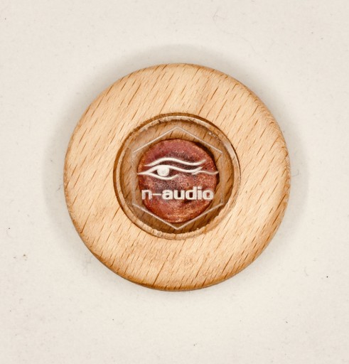 n-audio to podstawka średnicy 5 cm i grubości ok 1 cm. W dębowej oprawie umieszczona jest soczewka pola kwantowego QFL.
