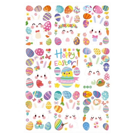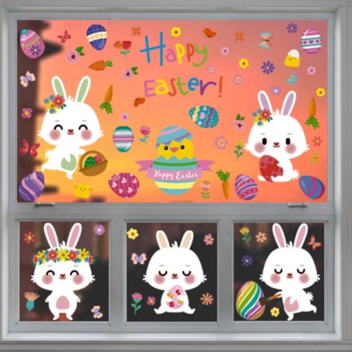 samoprzylepna dekoracja okna, wielokrotnego użytku z królikiem, wzór jaj wielkanocnych,