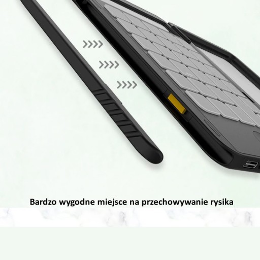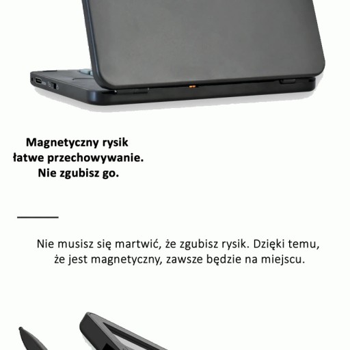 Rysik dopasowany do palców i dodatkowo wzbogacony o magnesy, które pozwalają łatwo przechowywać rysik wraz z kalkulatorem.