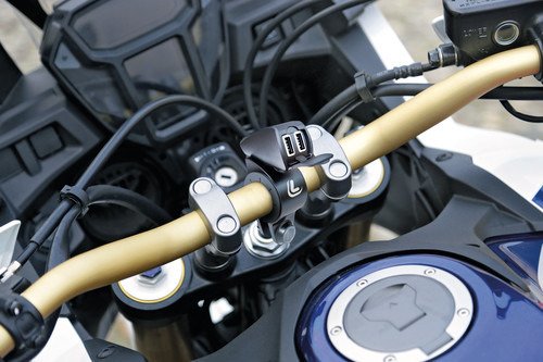 38828 Usb-Fix Trek, podwójna, wodoodporna ładowarka USB mocowana na kierownicy - Ultra Fast Charge - 5400 mA - 12/24 V