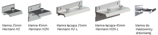 - klamry montażowe ścienne H2N do grubszych drzwi (dla szyny 200cm sugerowana ilość klamer - 7szt)