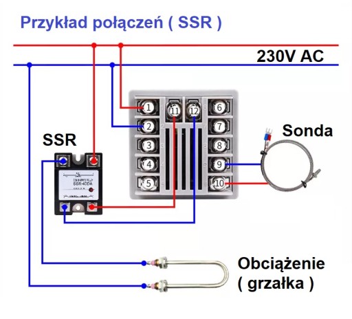 - Podwójny wyświetlacz LED: mierzonej (PV) i zadanej (SV).