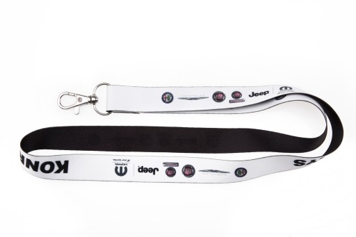 Smycz reklamowa z nadrukiem po 2 stronach z karabińczykiem 'srebrna rybka'.