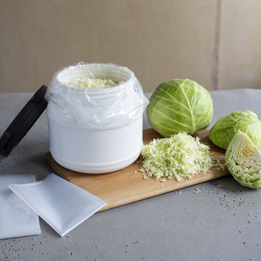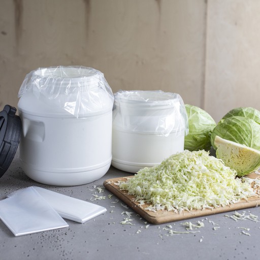 Uniwersalna i wszechstronna, biała, plastikowa beczka o wymiarach 22,3 cm x 22,3 cm x 20,5 cm, z zakrętką sprawdzi się zarówno podczas przygotowywania kiszonek np. kapusty czy ogórków, jak i jako pojemnik do przechowywania.